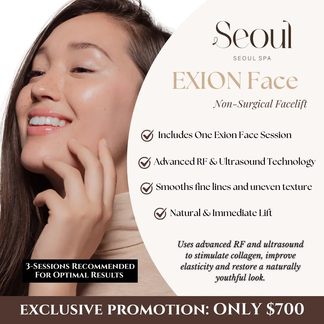 EXION Face is a non invasive skin rejuvenation treatment that uses advanced radiofrequency (RF) and targeted ultrasound to tighten the skin, smooth fine lines and stimulate collagen, elastin and natural hyaluronic acid production.